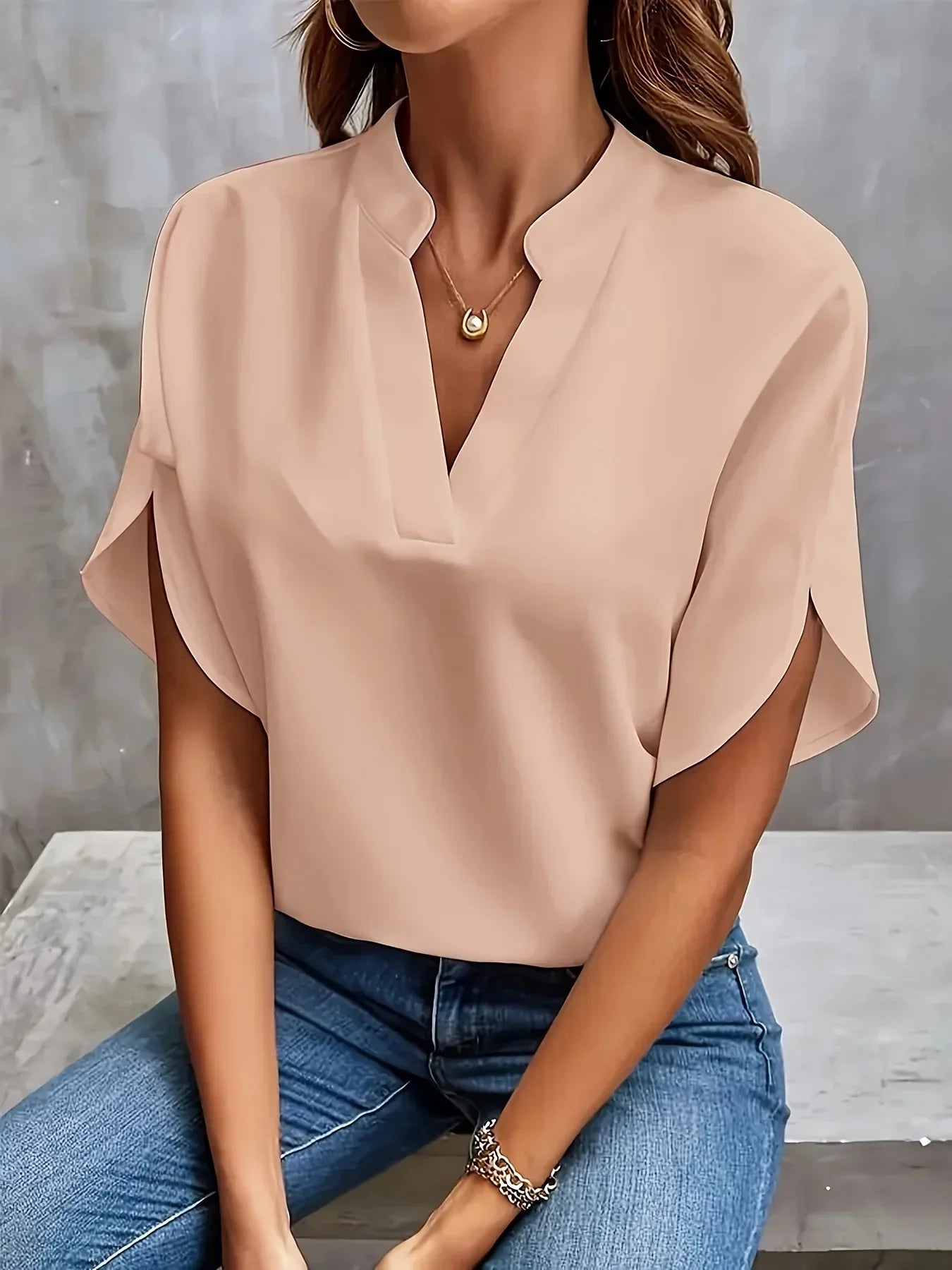 • Stijlvolle V-hals: Creëert een flatterend silhouet en een elegante touch.
